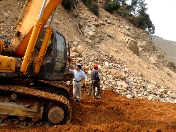 胡鸿煌副总经理现场指导洞口水库除险加固工程围堰施工