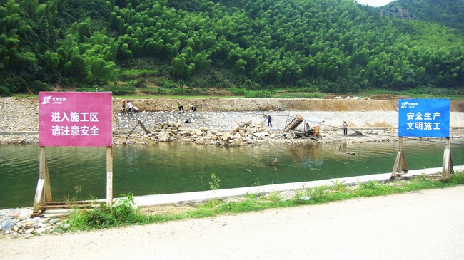 三清山管委会枫林镇防洪工程施工现场安全警示牌