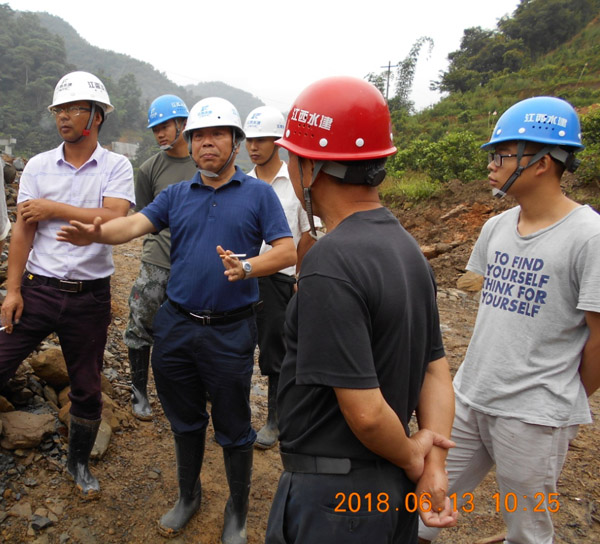 6月13日,总工程师胡鸿煌率公司安全生产月检查组到贵州望谟县新屯水库项目开展安全生产大检查。